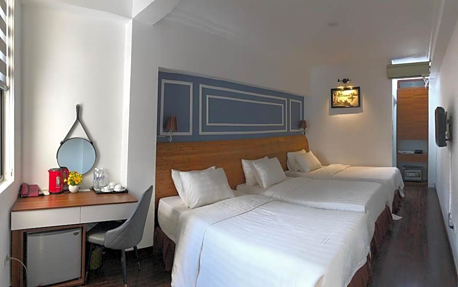 The Hanoi Sisters Boutique Hotel offers a variety of room types. They have Deluxe Triple Rooms that can accommodate up to 3 adults with either 4 twin beds or 1 king-size bed. They also have Double or Twin Rooms with 2 twin beds, Triple Rooms with City View that can accommodate up to 4 adults with 1 twin bed and 1 queen-size bed, Superior Triple Rooms with 4 twin beds and 1 queen-size bed, and Suites with City View that can accommodate 2 adults and 1 child with 1 queen-size bed. All rooms are non-smoking.