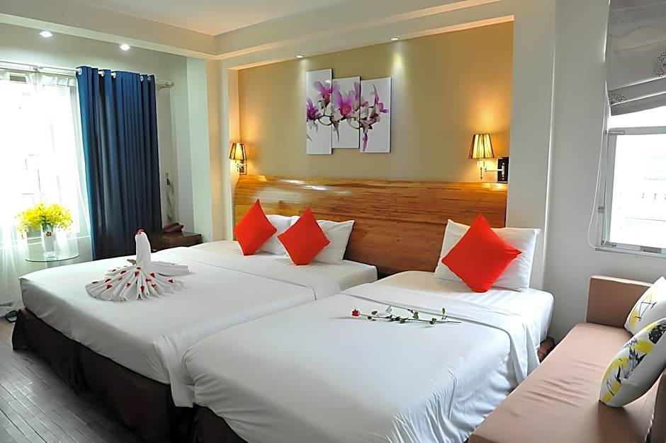 With various room types available, the Hanoi Sisters Boutique Hotel & Spa & Travel can accommodate different travel needs. For those traveling in a group, the Deluxe Triple Room and the Superior Triple Room offer ample space and can accommodate up to three adults comfortably. If you're traveling as a couple or with a friend, the Double or Twin Room provides a cozy and inviting atmosphere. And for families with a child, the Suite with City View is the perfect choice, offering spacious accommodations and a comfortable queen-size bed.