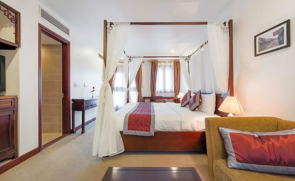 Spacious, air-conditioned suite features a private balcony offering views of Hanoi's Old Quarter and a seating area. Also includes a flat-screen satellite TV, safe and tea/coffee making facilities. The bathroom is fitted with a bathtub and a hairdryer. Benefits include: - Welcome fruits, drinks and flowers. - 10% discount at La Dolce Vita Restaurant. - Late check-out until 16:00, subject to availability.