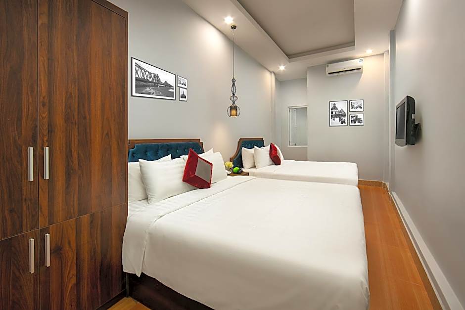 Room options span a range of styles, from Deluxe King with City View (216 sqft) to Deluxe Family (344 sqft) with two Queen beds, plus Queen Room (183 sqft) and King Room (269 sqft). Other configurations include Deluxe, Balcony (194 sqft) and Deluxe, Triple (270 sqft), as well as Executive, Triple (323 sqft) for groups. Each layout aims to fit different itineraries, delivering comfort after busy Hanoi explorations along with thoughtful touches like a private entrance.
