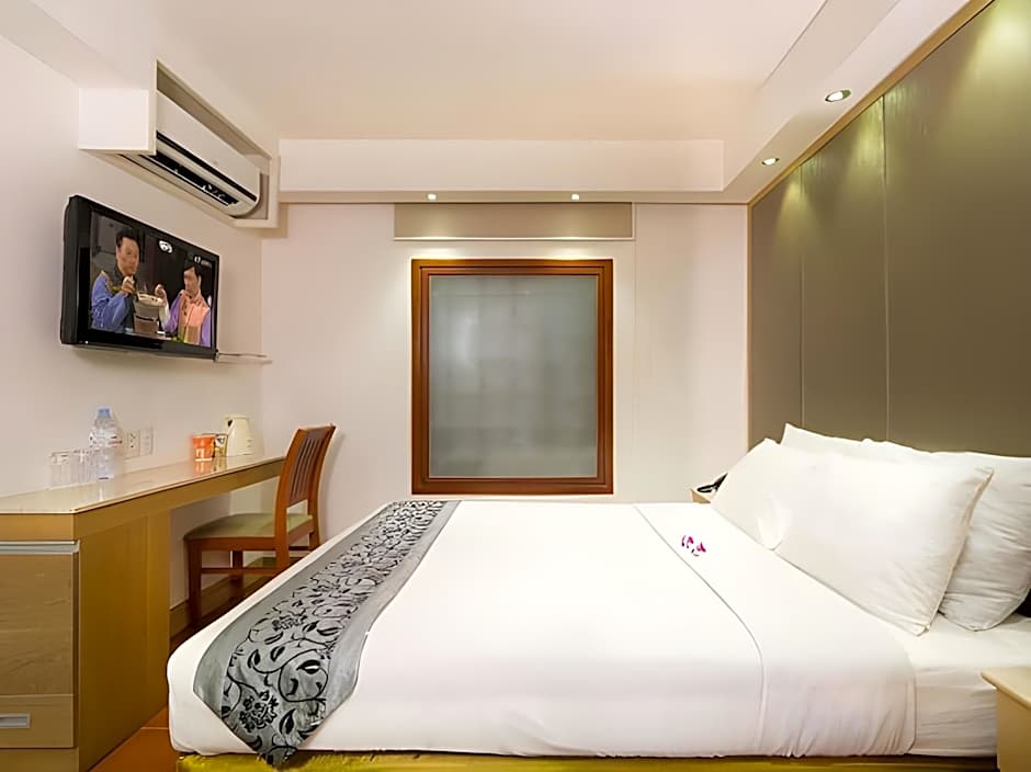 The spacious suites feature either a queen-sized bed or 2 single beds with a duvet and down pillows. Overlooking the street, the room also comes equipped with a mini-bar, cable TV and a private private bathroom that comes equipped with a separate shower. Room rates include: - Complimentary mini-bar - Free early check-in and late check-out (subject to availability) - Free local calls - Free laundry (2 pieces per night) - Free pressing (2 pieces per night) - Welcome fruit basket - Daily turn-down service - 20% discount on laundry and dry-cleaning services - 50% discount on hotel limousine services
