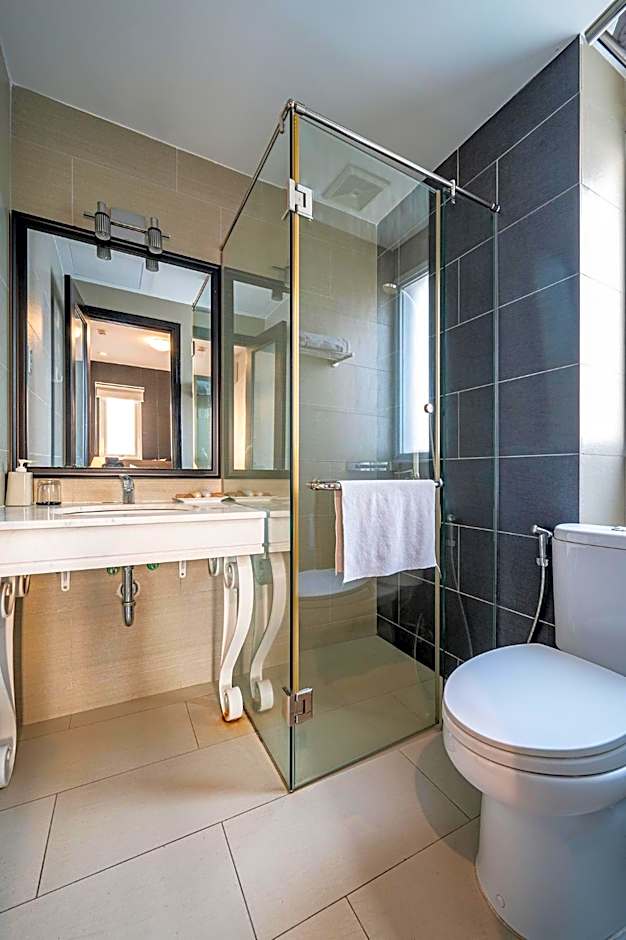 Fitted with wall-to-wall carpet flooring, air-conditioned rooms feature a wardrobe, seating area, mini-bar and a flat-screen TV with cable channels. Private bathroom comes with shower facility, slippers and free toiletries.