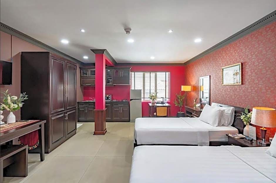 At La Bonita Hotel and Apartments, there are Family Suites and Superior Suites available. The Family Suite is a larger room with a size of 484 sqft, accommodating 3 adults and 2 children. It has a Twin bed and a Queen size bed. Smoking is not allowed. The Superior Suite, on the other hand, is slightly smaller with a size of 269 sqft and accommodates 2 adults only. It has a Queen size bed and is also non-smoking.