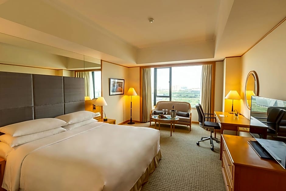 The hotel offers a variety of rooms including Deluxe rooms with city or river views, Club rooms with king beds or twin beds, Executive suites, and Presidential suites, all accommodating 2 adults and 1 child. The rooms generally do not allow smoking. Room sizes range from 366 sqft for standard rooms to 689 sqft for deluxe suites with bed sizes varying between king, queen, and twin beds.