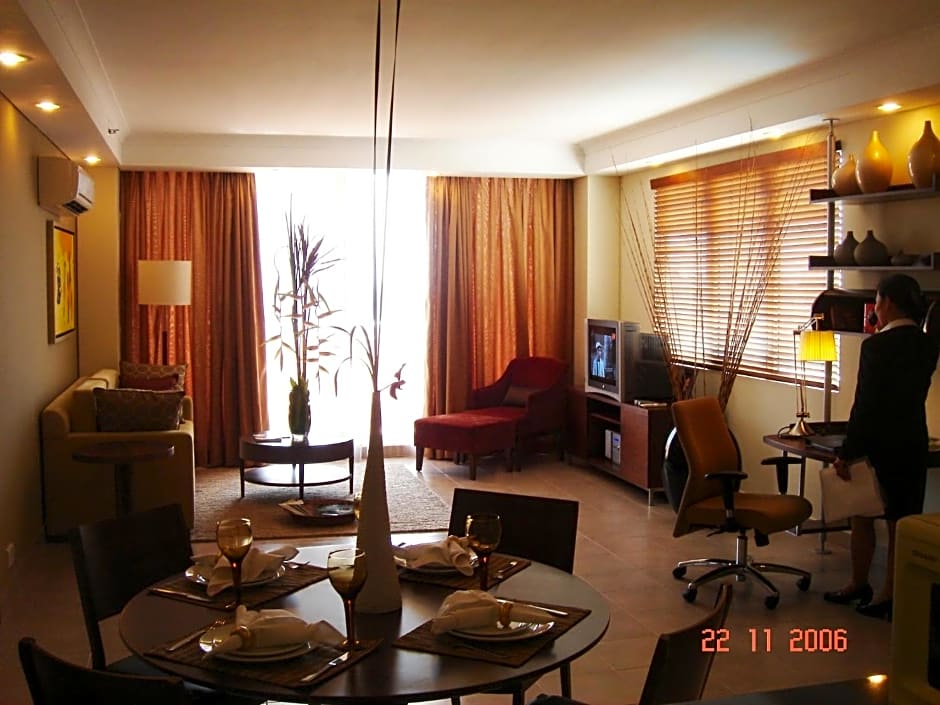 1-Bedroom Executive is 646 square feet and includes a king-size bed 150-183 width plus living room, balcony, extra beds on demand, desk, cable tv, hairdryer, tea and coffee making facilities , ironing set, safe, and slippers and is Wheelchair-accessible.