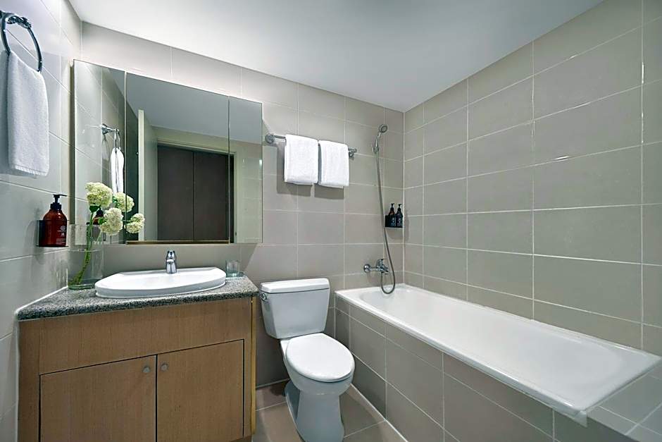 The hotel offers a variety of room types including One-Bedroom Executive Apartments, Premier Two-Bedroom Apartments, Two-Bedroom Executive Apartments, and Studio Executive Apartments. The rooms can accommodate either 2 adults and 1 child or 4 adults and 1 child. Smoking is not allowed in any of the rooms. The bed sizes range from King size beds to Twin beds. Room sizes vary from 388 sqft to 1130 sqft.