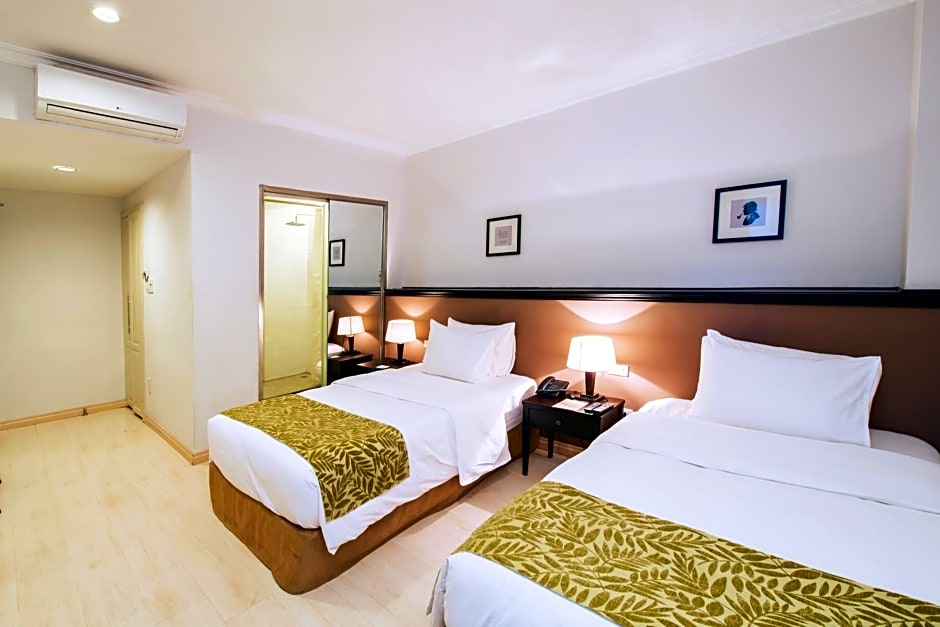 Room sizes vary, with options like Deluxe Twin; Executive Grand (323 sq ft); Alcove Queen (216 sq ft); Grand Alcove (323 sq ft); and Queen Room (194 sq ft) to choose from. Some spaces may feature extra-long beds or a bidet for added comfort. Cash is the only accepted payment method.