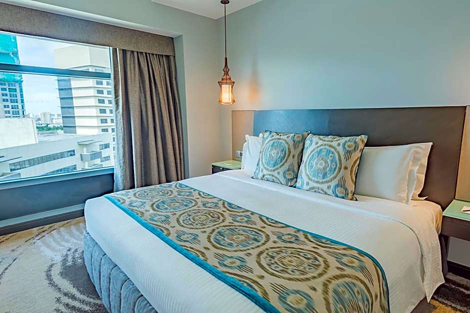 And that's not all! The Umi Hotel also offers a Triple Room with City View, perfect for a small group of three, with a twin bed and a queen-size bed. For families with one child, the Quadruple Room with Balcony is an excellent choice, offering a twin bed and a queen-size bed in a spacious 355 sqft room. If you're looking for a more compact option, the Standard Double Room offers comfort and convenience with a queen-size bed, while the Superior Double Room is the perfect choice for couples with a child, offering a queen-size bed and a room size of 215 sqft.