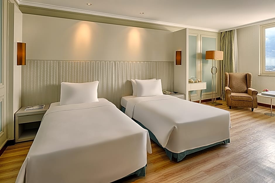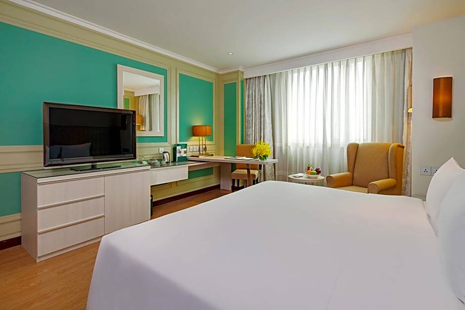 Room features a flat-screen TV and DVD player. Guests enjoy Executive Lounge access and benefits, including: -Optional breakfast: -Buffet Breakfast at Club Lounge, 24th floor from 06:00 to 10:00. -Chinese Set Menu Breakfast at Ngan Dinh Restaurant, 5th floor from 07:00 to 10:30. -Complimentary all day refreshments. -Evening cocktails - Happy hours at Top Of The Town Restaurant 25th floor from 17:00 to 19:00. -One hour use of meeting room at Club Lounge per day and non-accumulative (subject to availability). -Complimentary wireless and broadband internet connection and workstations at the Club Lounge. -Complimentary laundry service per night per room (Non-accumulative and not applied for dry cleaning. -Four garments for washing. -Three items for pressing. -Complimentary in-room local calls (Ho Chi Minh City only). -Complimentary late checkout until 16:00 subject to availability and upon request.
