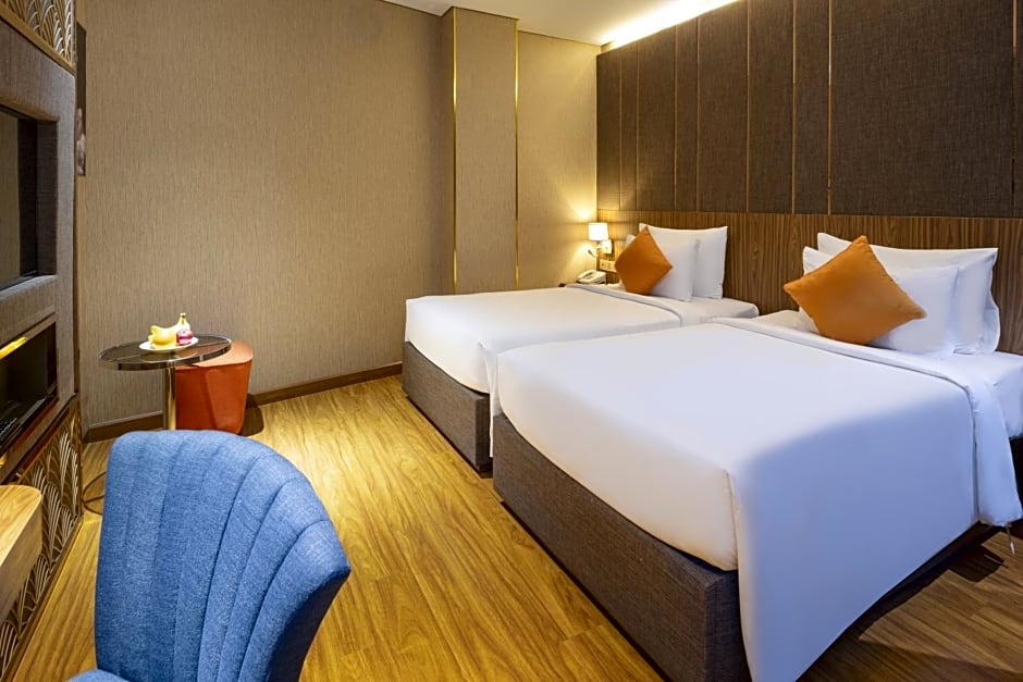 The hotel offers Deluxe Double or Twin rooms, Premier Deluxe Double or Twin rooms, and Suites such as Park Suite, Win Suite, Signature Suite, and Noble Suite. Smoking is not allowed in any of the rooms. The rooms accommodate 2 adults and 1 child, while the suites can accommodate either 2 adults and 1 child or 4 adults and 1 child. The bed sizes vary, with options including Twin, Queen, and King size beds.
