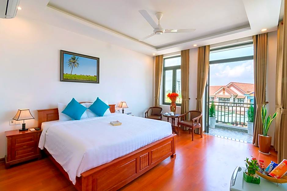 An Bang Beach Dolphin Homestay offers a variety of rooms including Standard Family, Deluxe Double with Balcony, Superior Double with Balcony, and Superior Double rooms. All rooms do not allow smoking and accommodate either 2 or 3 adults. Bed sizes range from Twin and Queen beds with room sizes varying from 377 to 484 sqft.