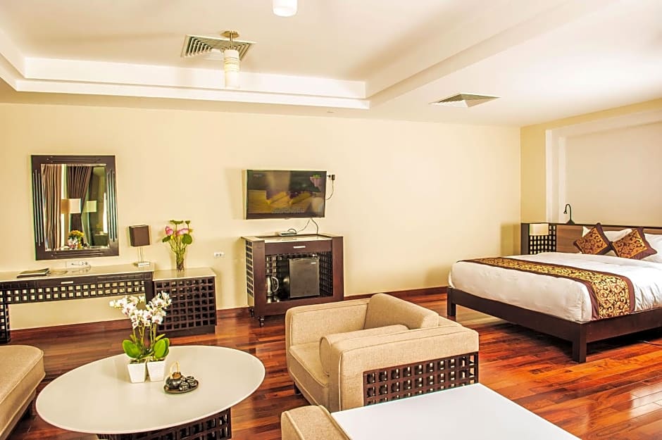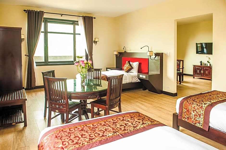 Bai Dinh Hotel offers a Deluxe Double or Twin Room with 388 sqft, accommodating 2 adults in a Queen size bed or 2 Twin beds. Smoking is not allowed. The Executive Triple Room is 710 sqft with accommodations for 3 adults and 1 child in 3 Twin beds, also with a non-smoking policy.