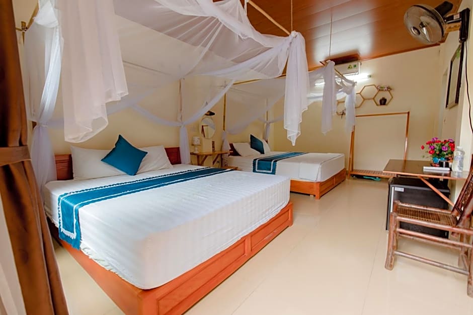At Tam Coc Luxury Homestay, the hotel offers a variety of room types including Triple Rooms, Deluxe Double or Twin Rooms, Deluxe Family Rooms, and Bungalows with Garden View. All rooms are non-smoking and have different bed and room sizes to accommodate different occupancy needs. The Triple Room with Mountain View can accommodate 3 adults and has one twin bed and one queen size bed. The Deluxe Double or Twin Room can accommodate 2 adults and 1 child, with one queen size bed and two twin beds. The Deluxe Family Room can accommodate 4 adults and 1 child, with two queen size beds. The Bungalow with Garden View can accommodate 2 adults and 1 child, with one queen size bed.