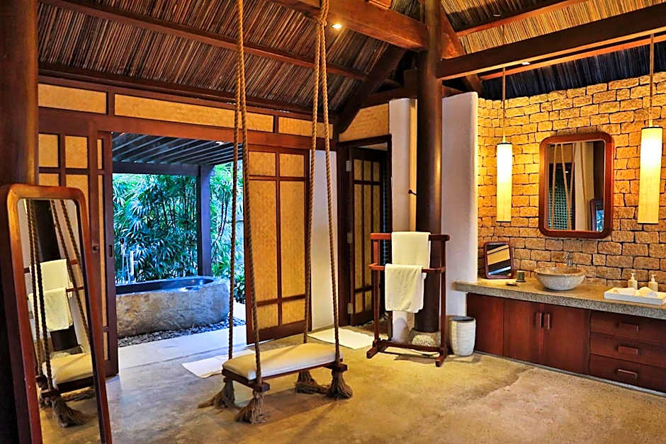 Offering views of the sea and tropical rainforest, luxurious villa features a private plunge pool, an open-air lounge deck, dining area and balcony. The separate air-conditioned bedroom includes a mosquito net, a TV and entertainment system. The large private bathroom offers shower facility and a separate bathtub. Includes 24-hour butler service, one-time speedboat transfer and one-time shuttle service between Nha Trang city and the resort (not apply for check-in and check-out date). Maximum 1 child under 11 years of age can be accommodated in this villa when using existing beds, surcharge applied. Children Safety Disclaimer form should be signed and sent to the resort prior to your arrival. Kindly contact property for further information.