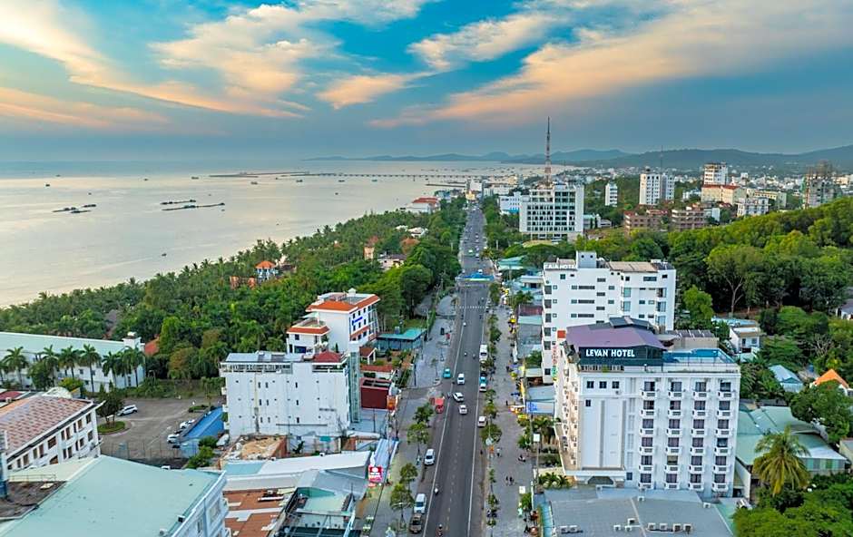 Levan Hotel is a 3-star seaside escape in Phú Quốc, Vietnam, nestled in Tt Duong Dong. Address: 79 Tran Hung Dao, Tt Duong Dong, Phu Quoc. About 6,5 mi from the city center, this beachfront property blends easy access with an island vibe. Highlights include a private pool, an outdoor swimming pool, and a kids’ pool, plus free WiFi and free on-site parking, with balcony or terrace views and a mountain backdrop.