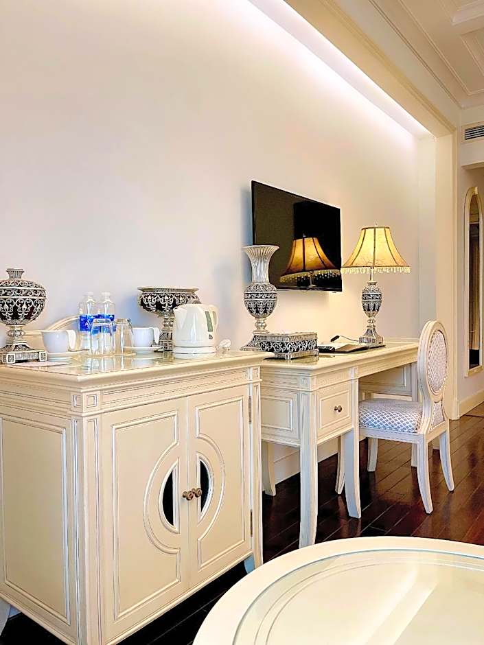 Enjoying city views, this elegantly furnished room features a tea/coffee maker, flat-screen TV and a mini-fridge. The bathroom offers separate bathtub and shower.
