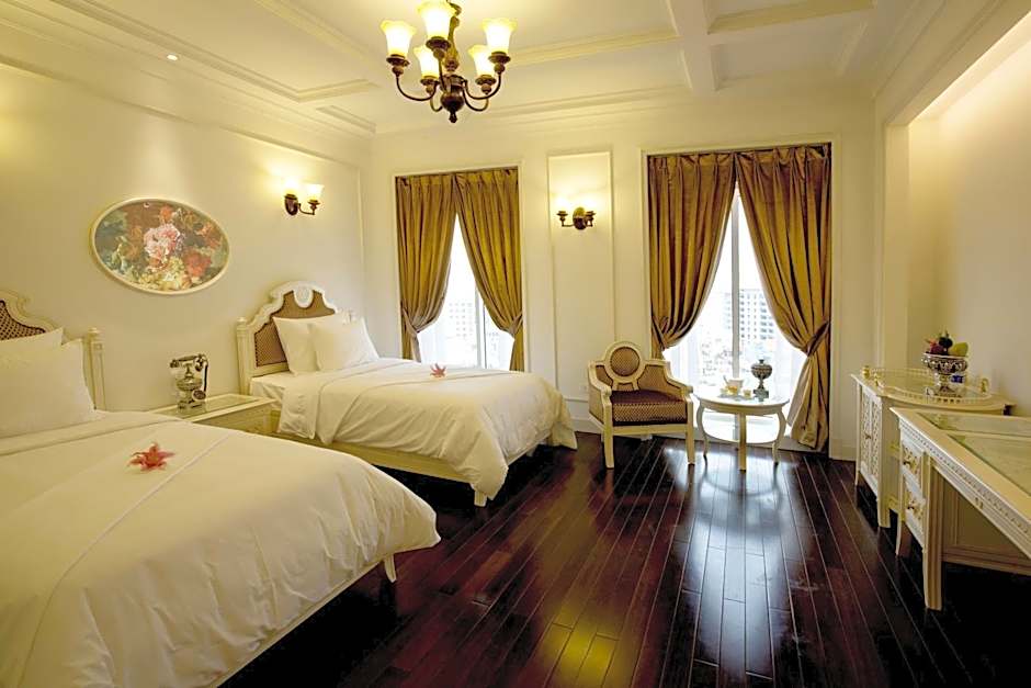 This twin room features views of Hue city. It has a separate bathtub and shower.