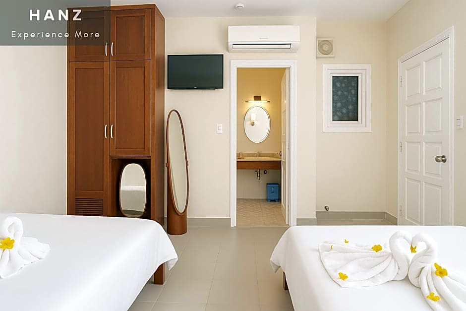 HANZ Bao Khoi Hotel offers a variety of room types including quadruple rooms with two queen beds, double rooms with queen beds, and studio rooms with queen beds. Smoking is not allowed in any of the rooms. The room sizes range from 161 sqft to 269 sqft. Rooms can accommodate 2 to 4 adults and do not accommodate children.