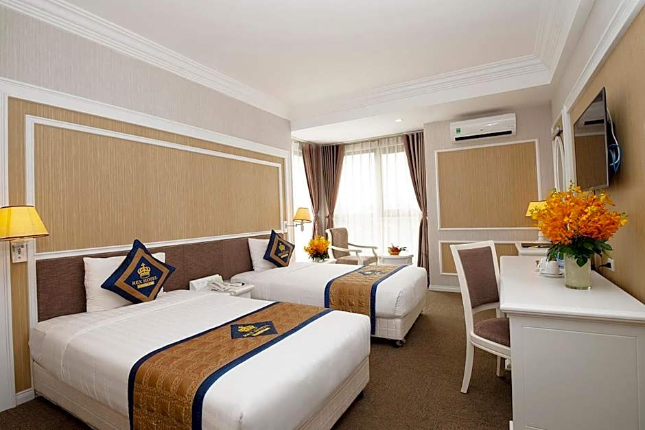 The Rex Hotel offers a variety of room types including suites, doubles, and twin rooms. All rooms have a size of 269 sqft or 538 sqft. Smoking is not allowed in any of the rooms. The rooms accommodate 2 adults and 1 child and have either 1 double bed or 2 twin beds.