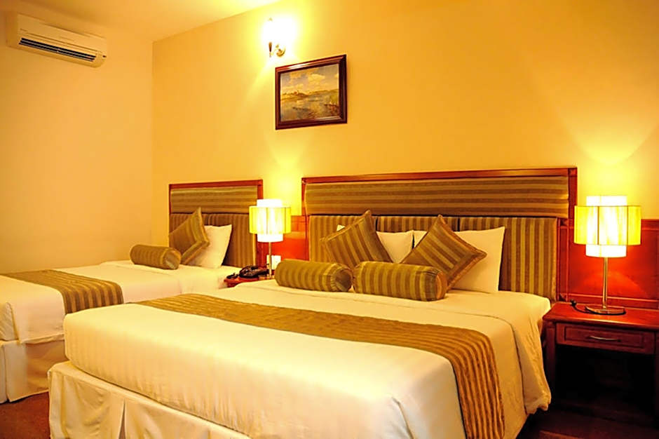 The Coast Hotel Vung Tau offers Deluxe Triple Rooms, which are non-smoking rooms with a size of 377 sqft. These rooms can accommodate 3 adults and 2 children, with bed options including 1 Twin bed and 1 Queen size bed.